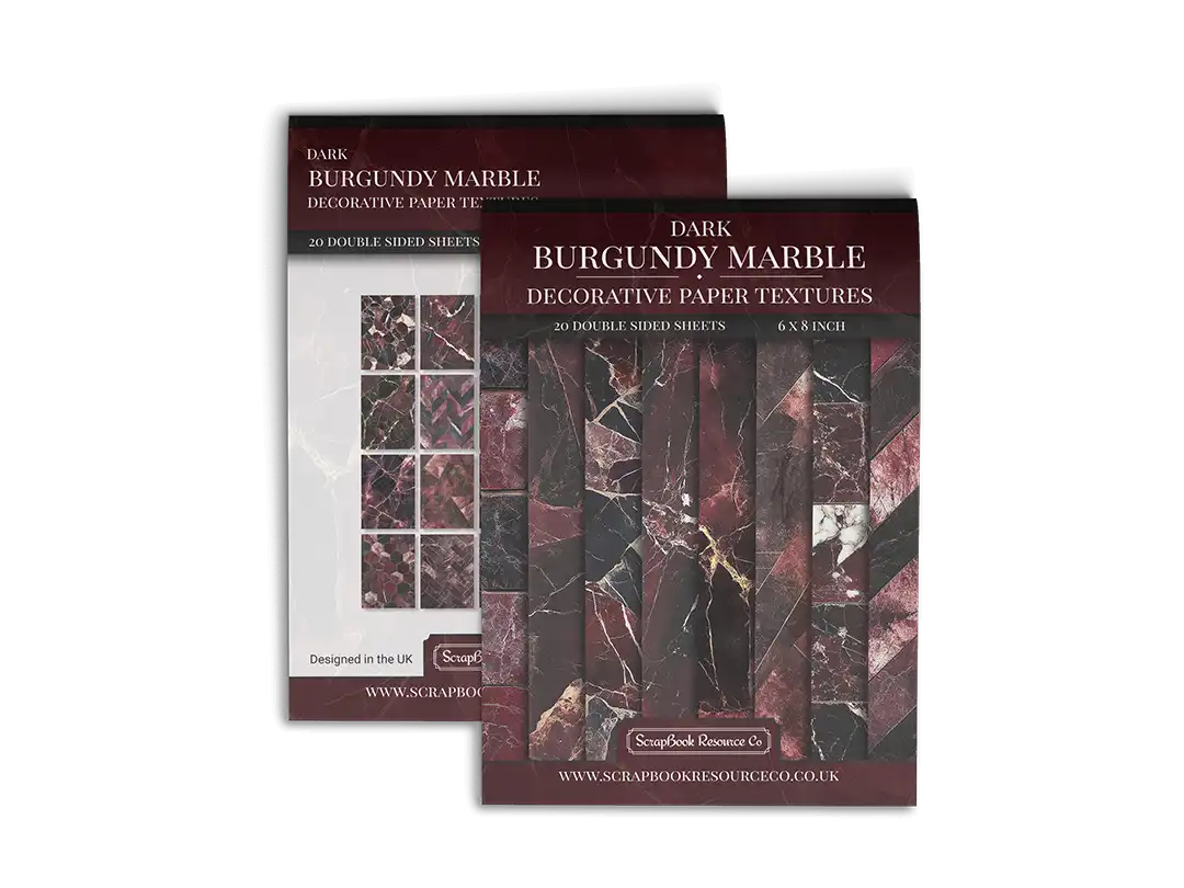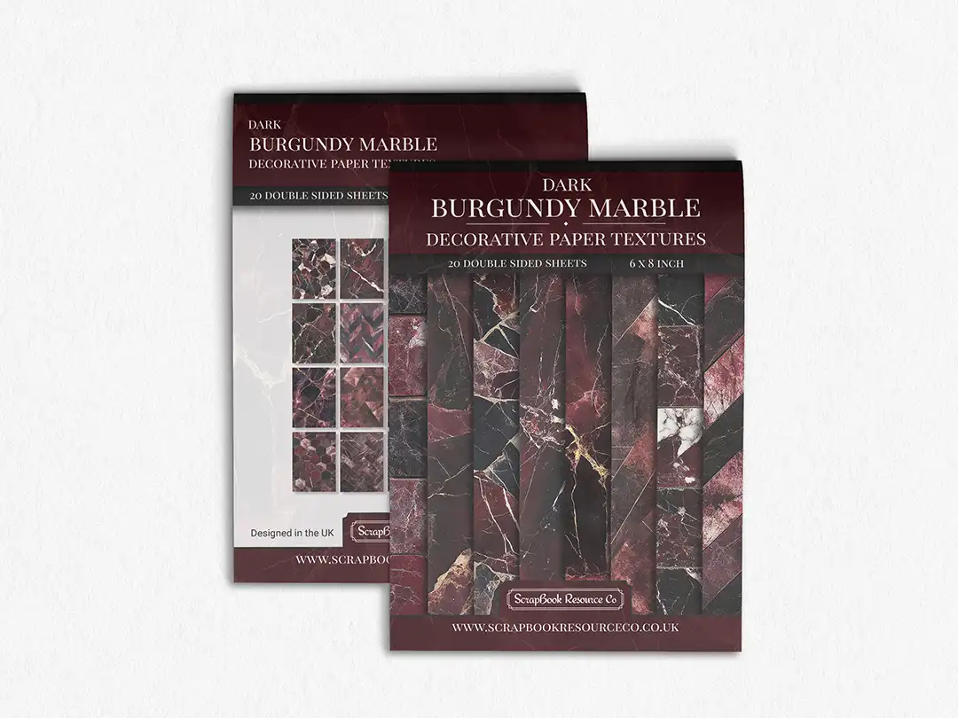 Dark Burgundy Marble : Decorative Paper Prints Pad for Junk Journaling, Scrapbooking and Cardmaking