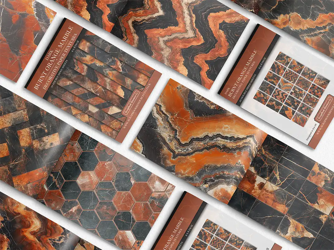 Dark Burnt Orange Marble : Decorative Paper Prints Pad for Junk Journaling, Scrapbooking and Cardmaking
