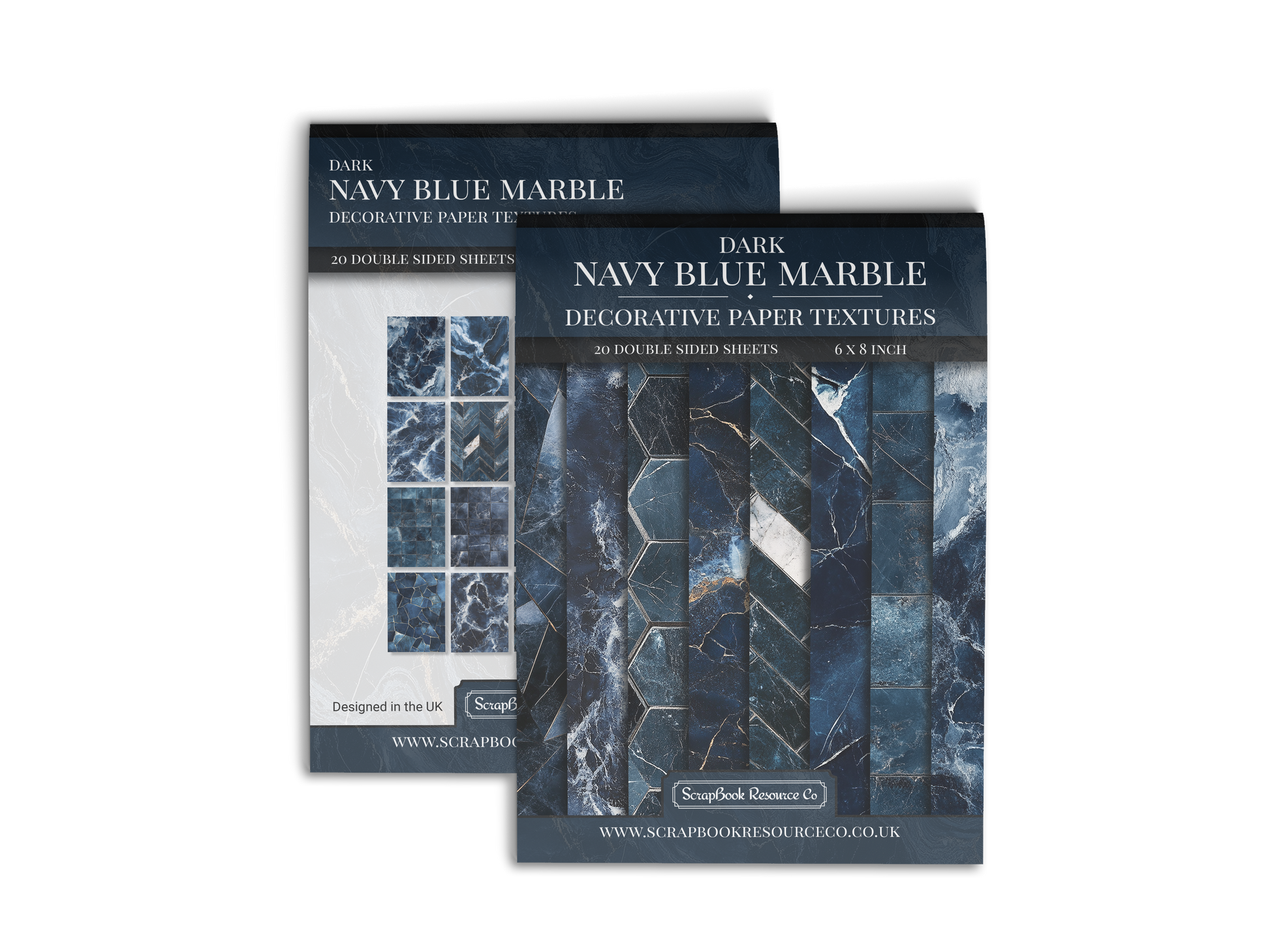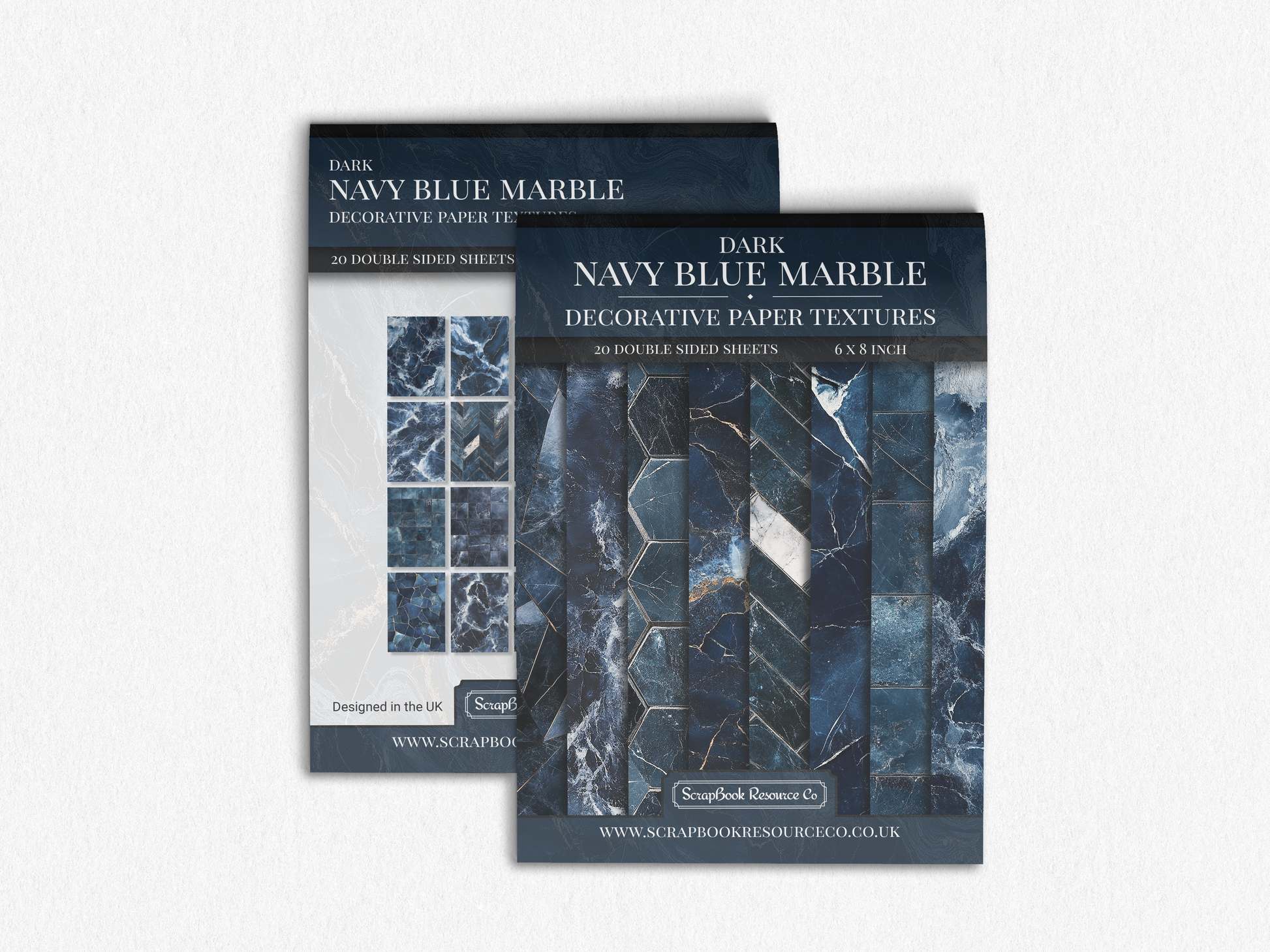 Dark Navy Blue Marble : Decorative Paper Prints Pad for Junk Journaling, Scrapbooking and Cardmaking