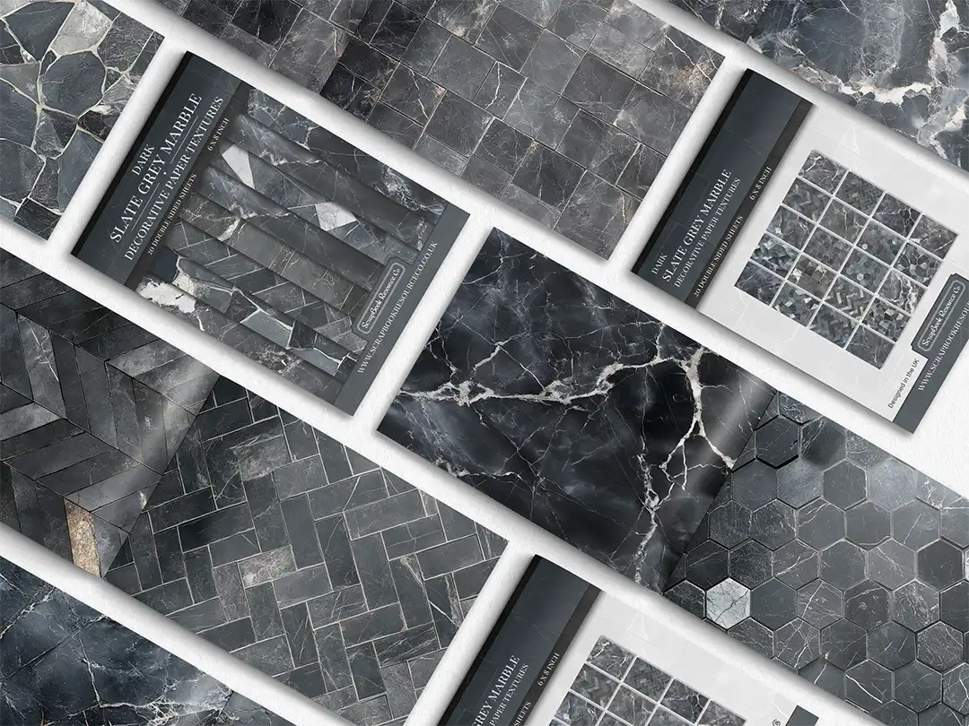 Dark Slate Grey Marble : Decorative Paper Prints Pad for Junk Journaling, Scrapbooking and Cardmaking