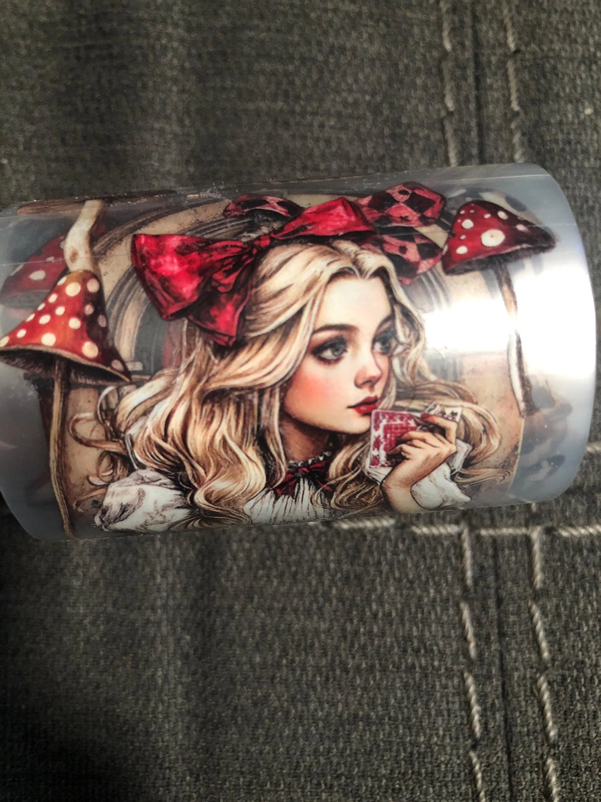 Enter the whimsical world of 'Wonderland,' where imagination knows no bounds and every corner holds a delightful surprise. This PET Tape brings to life the enchanting realm of Wonderland and its curious inhabitants, captured in a vibrant palette of red, black, and beige. Perfect for scrapbooking & Junk Journaling.